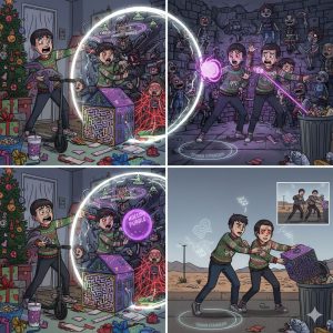 One day there were two kids and two parents and they were opening up their presents for their Christmas. But when they got their last present, something no one expected happened. So on the 25th Christmas day they got to start opening their presents and they were so excited . Some of them were wishing for a bike, some for a cup and one for a stingray wait what. Well they went on for getting a electric scooter and more but they got so many candy and lollies they would have got diearea hehe just kidding so they got into finishing there present and there was a maze with doll characters and they were scared and suddenly they teleported inside of the maze they were even more scared because no one got this present for anyone they said. So they were roaming around trying to find the exit and suddenly. They had encountered a horde of zombies they were running for their lives trying to find the exit. Suddenly they found it but there was a king of monsters but they realised they had powers. So he uses domain expansion infinite shrines and other uses a shareiangan and they kill it and they finally go back to the world and throw it away. But then they still had their powers and it was a simulation so they had to fight another horde of zombies and five more king monsters so they used their powers to demolish but this time there were two domain expansions. And also all hollow purple and more. Then they finished and they threw it into the rubbish and never talked about it again. But it kept talking and talking so instead of throwing it in the bin they went all the way across the country and threw it in someone’s random bin.